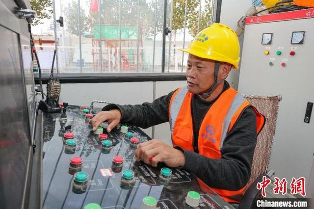貫通前,工作人員正在觀察頂管機導(dǎo)向。