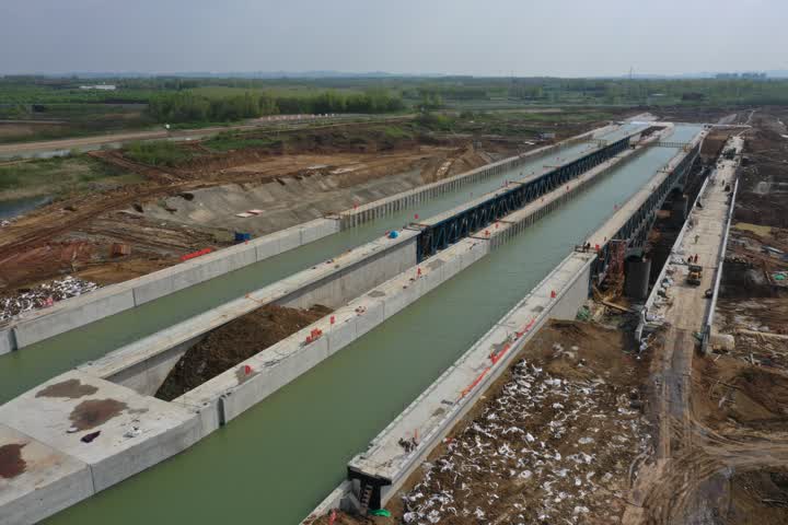 2021年4月15日上午12時(shí),引江濟(jì)淮淠河總干渠渡槽充水試驗(yàn)充水水深到達(dá)5.05米,充水試驗(yàn)最大荷載加載完成。這標(biāo)志著世界最大跨度通水通航鋼結(jié)構(gòu)渡槽——引江濟(jì)淮淠河總干渠渡槽充水試驗(yàn)取得階段成功。