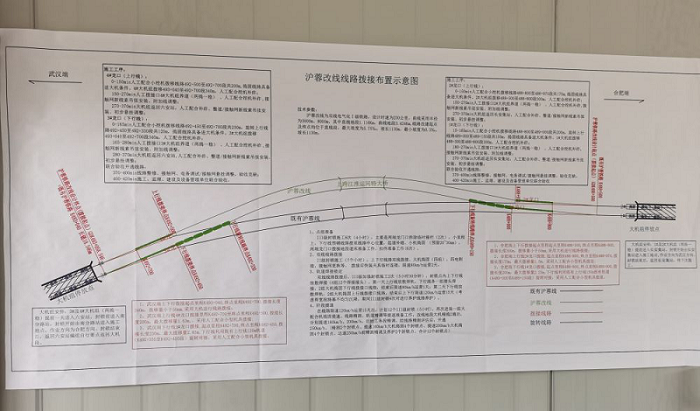 工程地點位于安徽省合肥市肥西縣,這是國內(nèi)首例高鐵雙線撥接作業(yè),它讓原有的高鐵線“拐了一個彎”,改線至新建滬蓉鐵路線上。