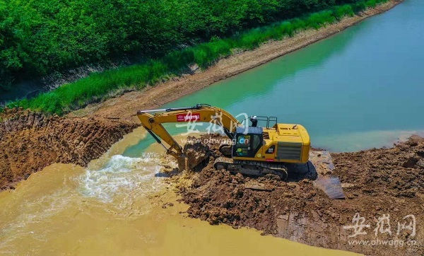 記者在施工現(xiàn)場看到,隨著數(shù)臺挖掘機(jī)挖開淠河總干渠的攔水圍堰,淠河總干渠的水緩緩流進(jìn)渡槽,“改道”渡槽,正式上跨引江濟(jì)淮運(yùn)河。